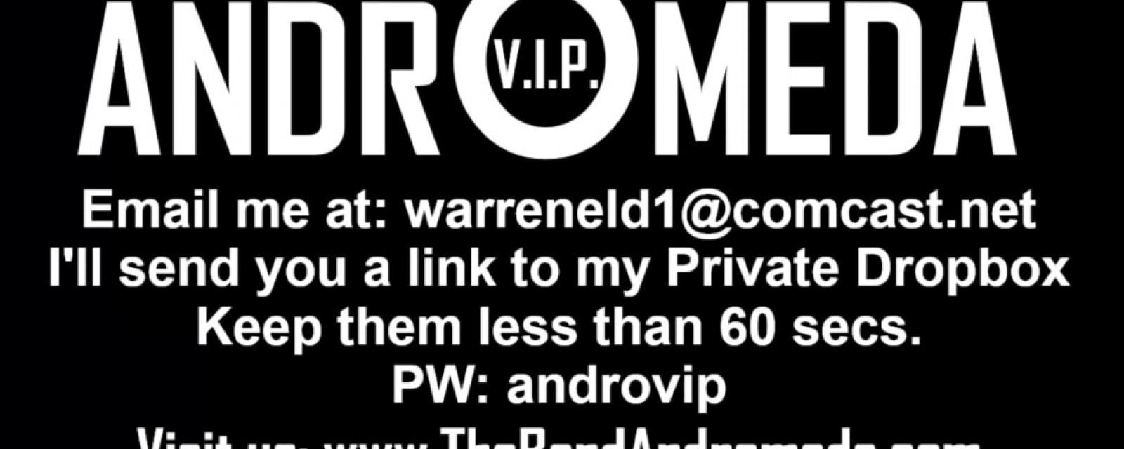 With so many exciting things in the future for the band Andromeda be sure to get your free VIP card at the next gig. With it you can send us your videos, pictures and be first in line for what's next.